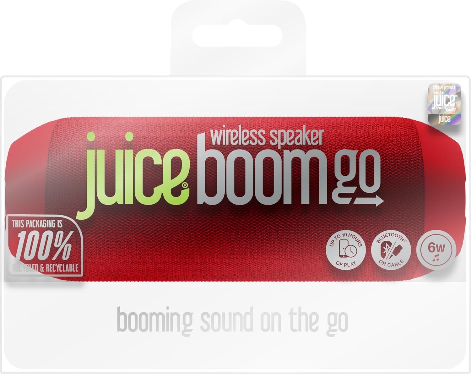 Juice BoomGO Bluetooth Speaker. Wireless Speakers with Bluetooth, 360 Sound and 3 x 2W Speakers. Splashproof, Durable Portable Speaker, Compatible with MP3, Tablet & Mobile Devices - Red