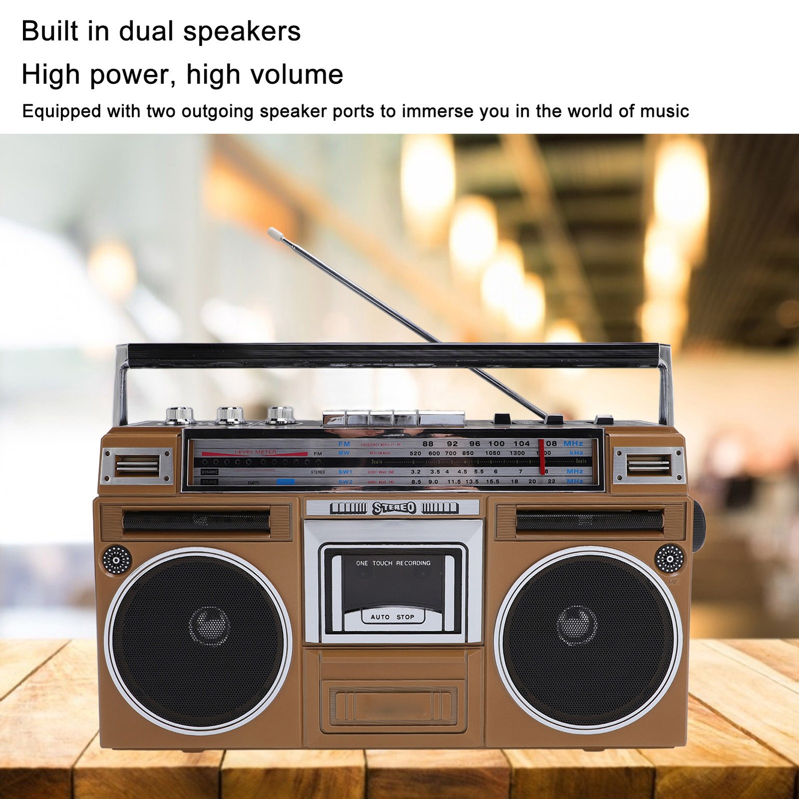Cassette Tape Player Bluetooth Boombox Portable 4 Band Radio Gold US