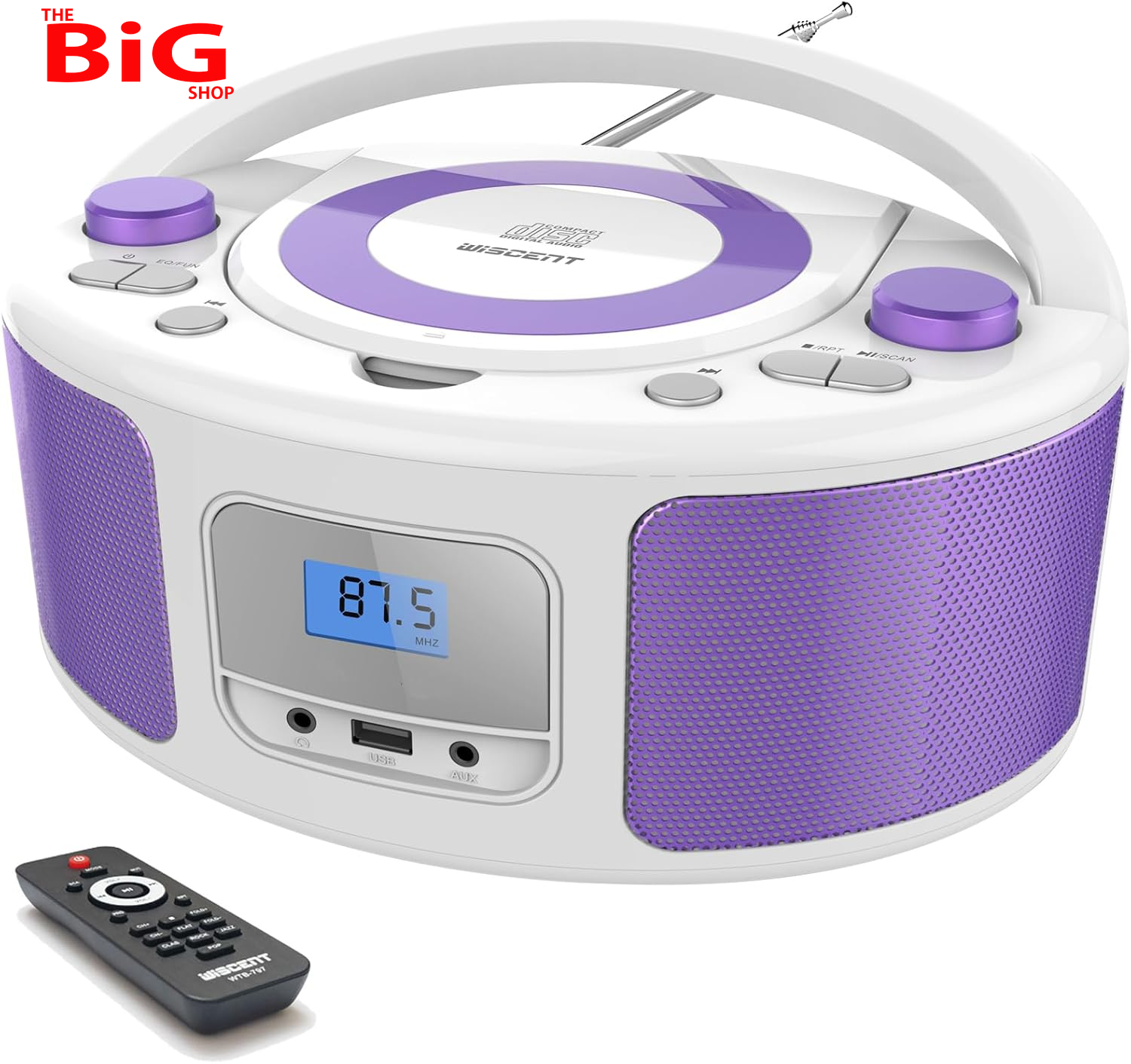 WISCENT CD Radio Portable CD Player Boombox with Bluetooth,Fm Radio,Cd-Mp3/Cd-R/