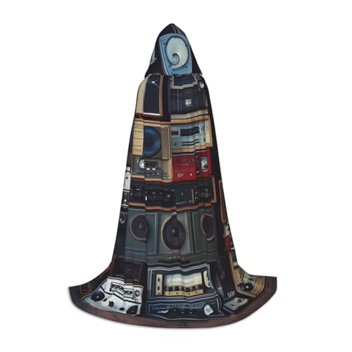 BYPPJGH Halloween Hooded Cape For Adult Vintage Wall Of Radio Boombox Full Length Cape Cloak Halloween Christmas Cosplay Costume For Men And Women