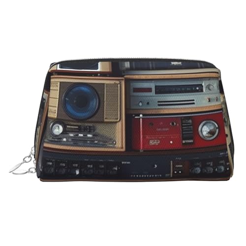 ANABPRMA Vintage Wall of Radio Boombox Hard Shell Leather Pencil Case, Multi-Use Zipper Box for Stationery, Makeup or Small Accessories