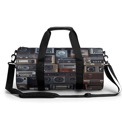 Sports Gym Bag for Women Men Travel Duffel Bag Tote Weekender Bag Vintage Wall of Radio Boombox Carry on Overnight Bag for Travel Swimming Fitness Workout Sports Duffle Bag