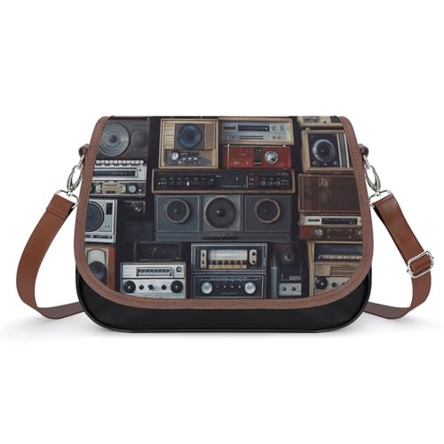 LPAGBCNU Vintage Wall of Radio Boombox Crossbody Bags for Women Removable Straps And Zipper Closure Leather Shoulder Bags Womens Handbags Clutch Purse