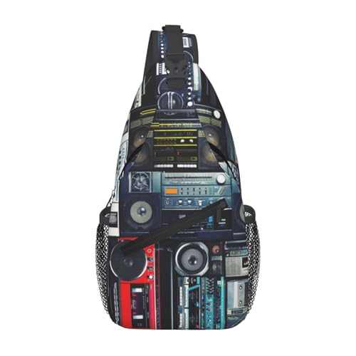HEBSDFG Wall of Radio Boombox Pattern Sling Backpack Funny Messenger Chest Bag Zipper Sling Bag for School, Travel & Work