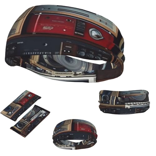 Sports Headband for Men Women,Moisture Wicking Sweat Bands Stretchy Workout Non Slip Headbands Vintage Wall of Radio Boombox Hairband for Running Yoga Cycling Workout