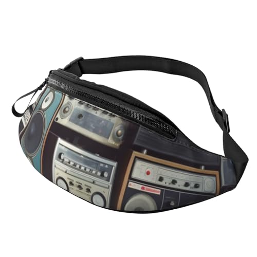 Vintage Wall of Radio Boombox Fanny Pack for Men Women Crossbody Waist Bag Waterproof Sports Belt Bag Outdoor Hip Pack
