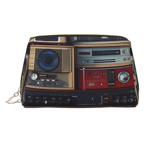 GDSHJKLW Vintage Wall Of Radio Boombox Leather Pencil Case Large Capacity Pen Pouch,Zipper Makeup Bag For Women Men Travel Toiletry Bags Waterproof Cosmetic Bag Wide-Open Coin Pouch Purse, Gold, One