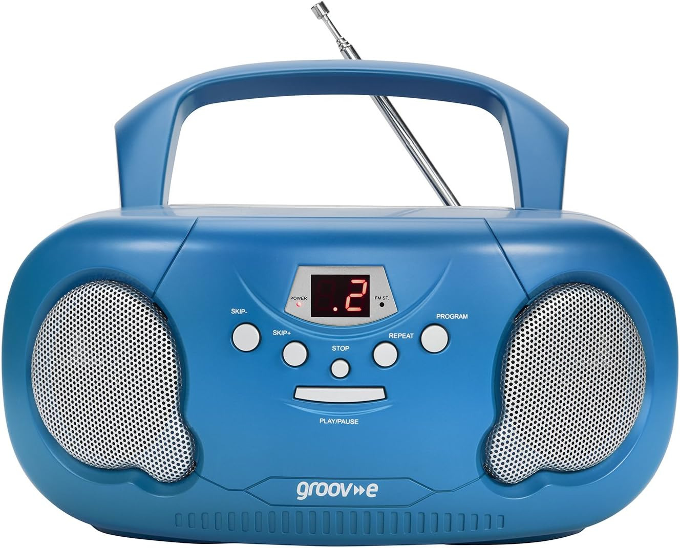 groov e Orginal Boombox - Portable CD Player with Radio, 3.5mm Aux Port, Blue