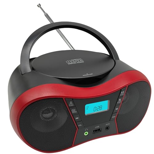 groov e Orginal Boombox - Portable CD Player with Radio, 3.5mm Aux Port, Red