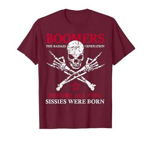 X Generation Boomers Before All You Sissie were Born Skull T-Shirt, Men, Burgundy, XX-Large
