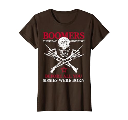 X Generation Boomers Before All You Sissie were Born Skull T-Shirt, Women, Brown, Small