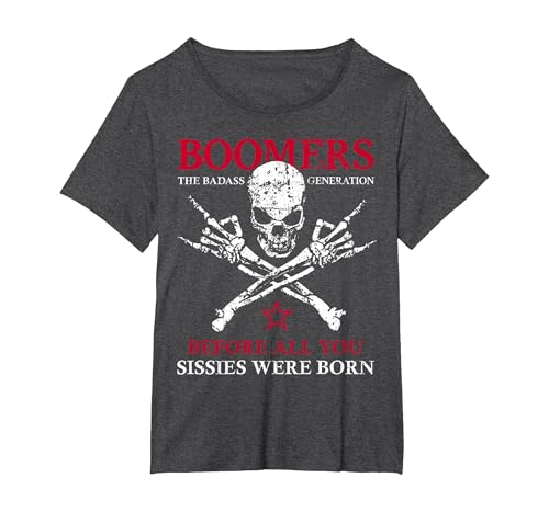 X Generation Boomers Before All You Sissie were Born Skull T-Shirt, Women's Plus, Dark Heather Grey, 6X