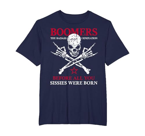 X Generation Boomers Before All You Sissie were Born Skull T-Shirt, Men, Navy Blue, X-Large