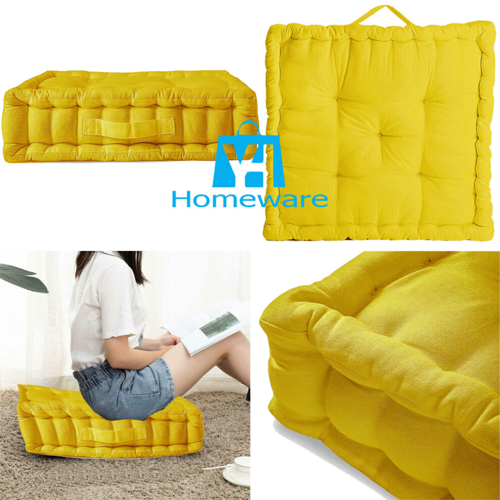 HOMESCAPES Morocco Striped 100% Cotton Floor Cushion Yellow 40 x 40 x 8 cm Square Indoor Garden Dining Chair Booster Seat Pad Cushion