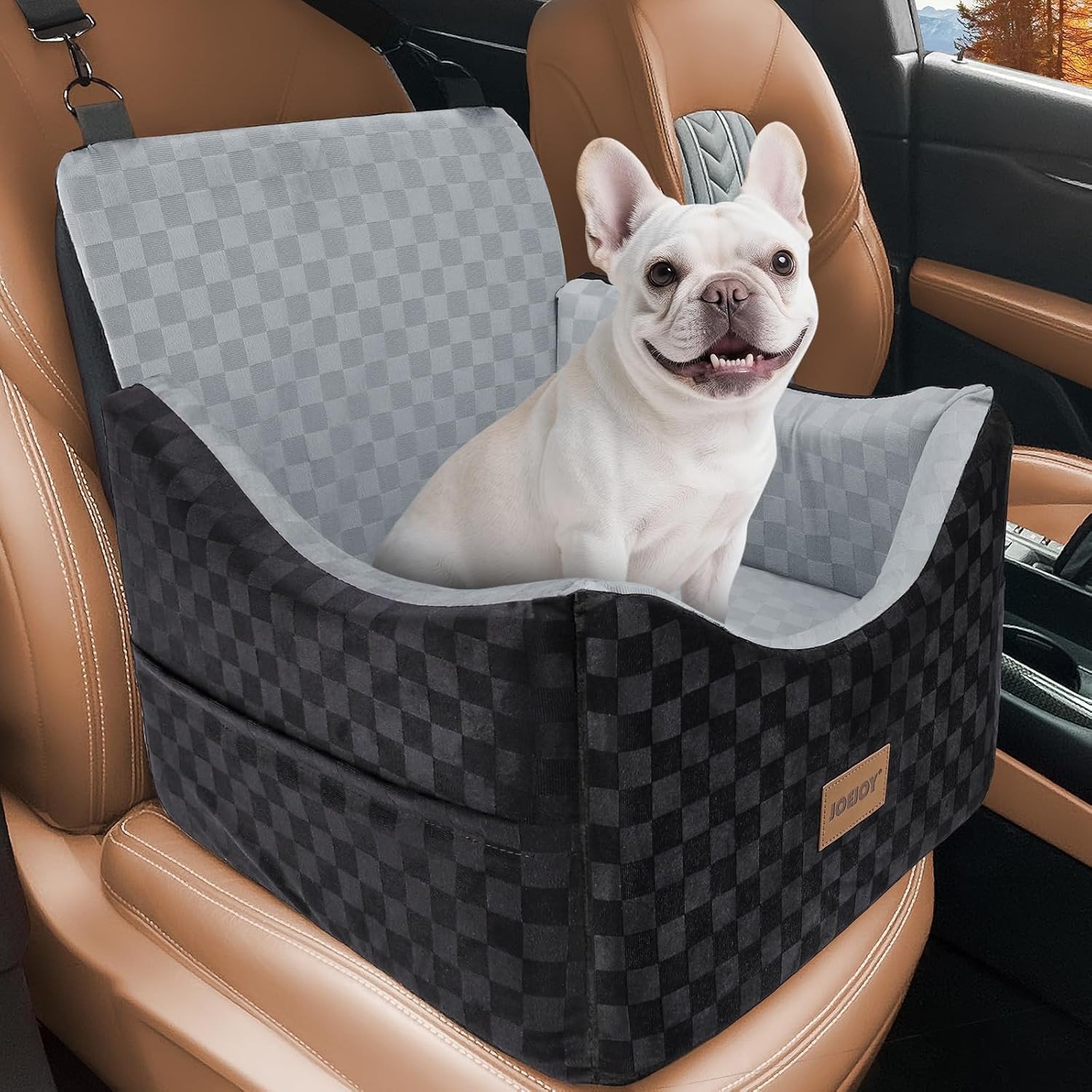 JOEJOY Small Dog Car Seat, Memory Foam Dog Booster Seat with Thick Cushion, Washable Dog Travel Bed for Medium Dogs with Detachable Cover and Storage Pockets, Adjustable Straps