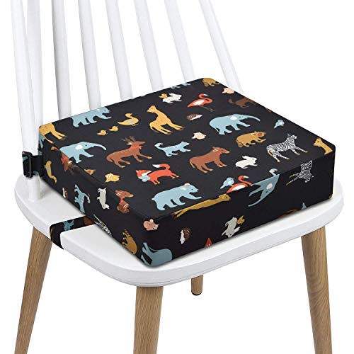 Booster Seat Dining Chair Toddler, Washable Table Boster Seat for Toddler 4 Belt Attach to Chair, Portable Travel Baby Child Kids Booster Cushion Black Animal