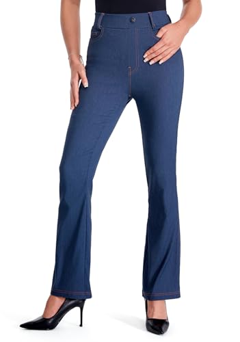 Flare Jeans for Women Ladies Elastic Pull-On Skinny Flared Leg Pants Bootcut Denim Jeggings, Blue, XXL