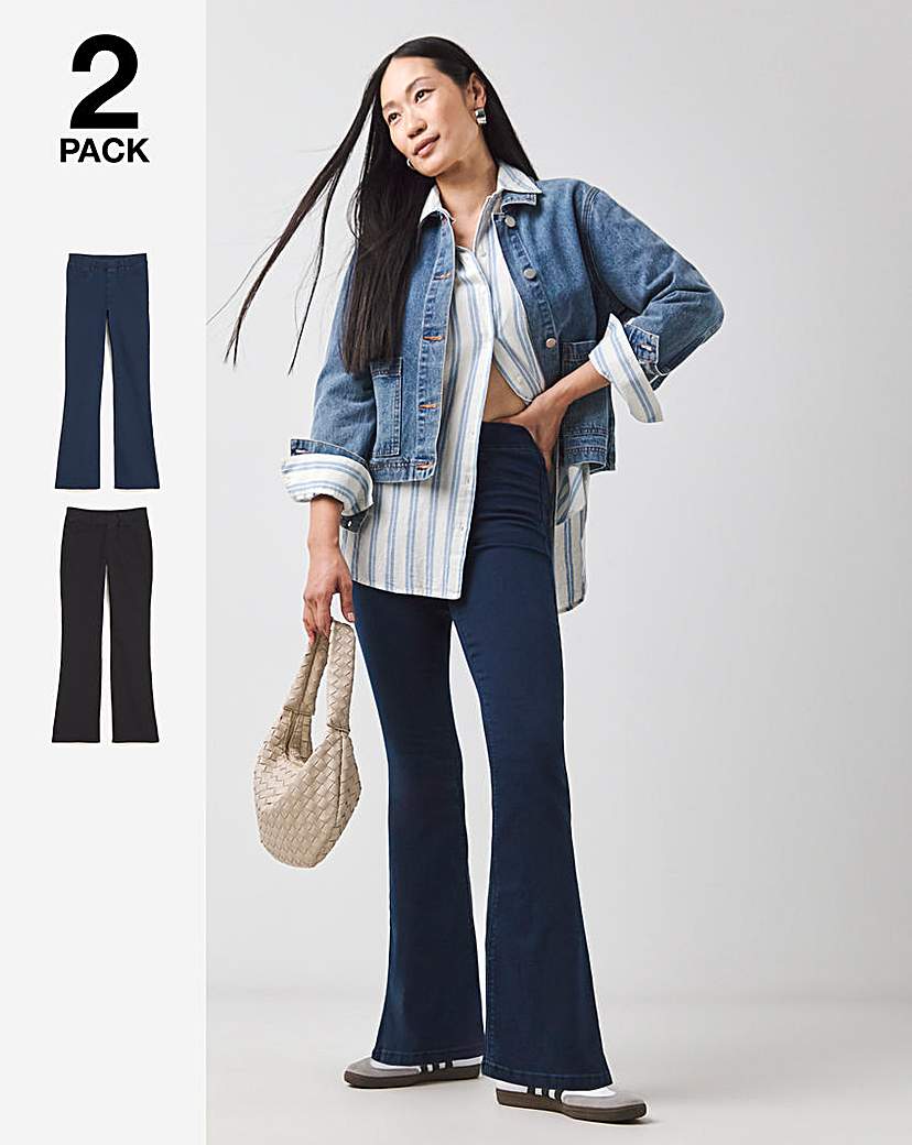 2PK Indigo/Black Bootcut Jeggings Black Blue - JD Williams - Size: 24