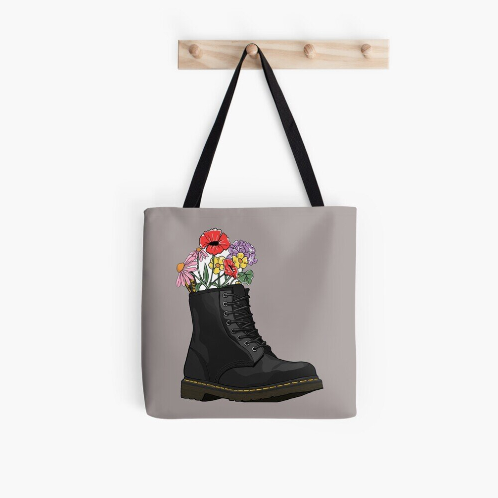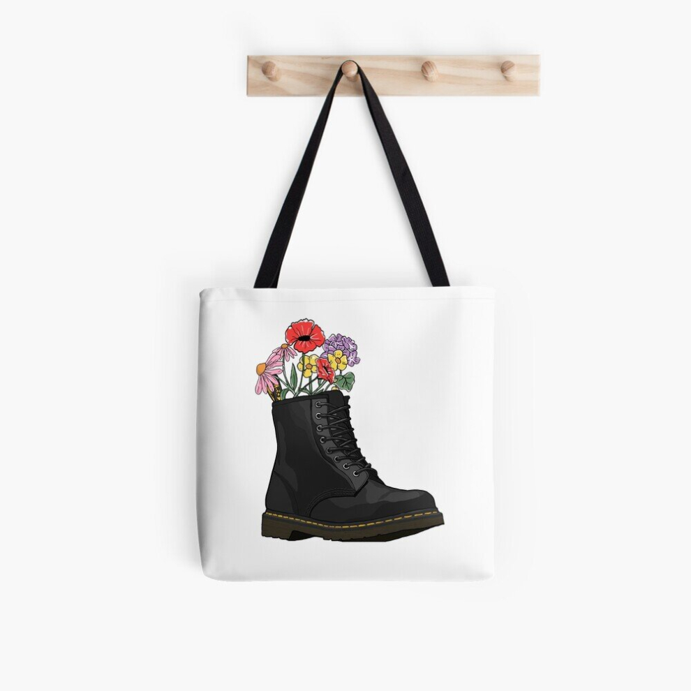 Tote Bags flowers growing from doc marten boot Grocery for School Library Gym