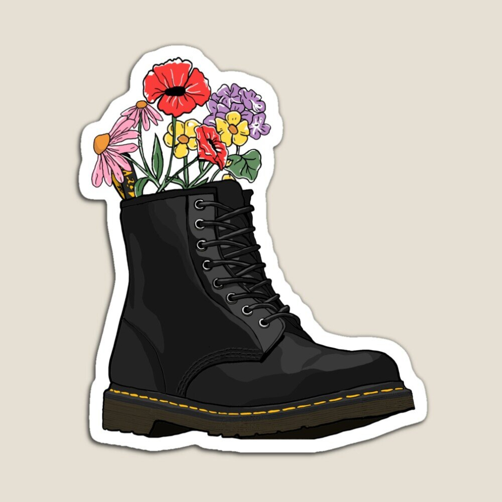 Fridge Magnets flowers growing from doc marten boot Acrylic Meme Decoration for Home Kitchen Office