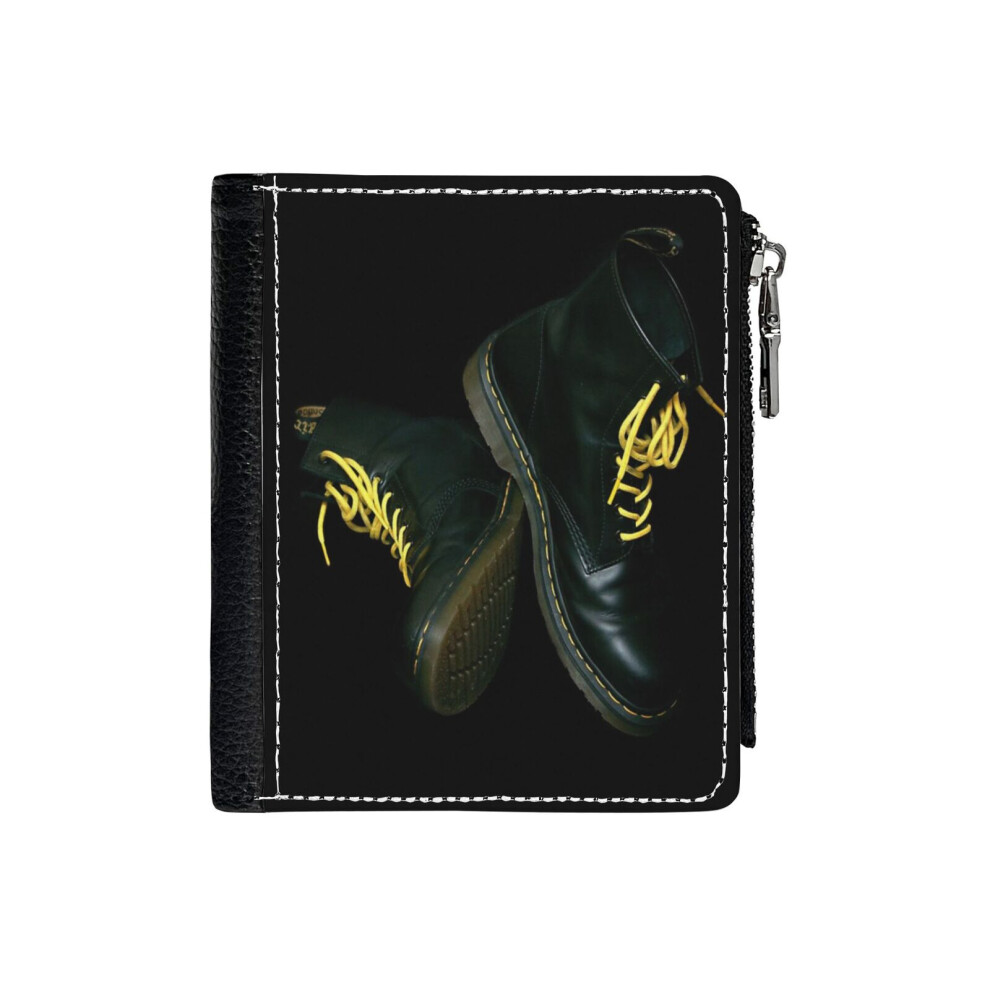 (Black Doc Marten Boots_2895) Men's Women PU Leather Wallets Compact Bifold with Zipper & Multiple Card Coins Slots Black Stylish Durable Graphic Desi