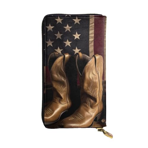 FHEDVBN American Flag with Cowboy Boots Wallet for Men Women Long Purse Leather Clutch Large Business Handbag Travel Phone Holder Credit Card Holder Money Case with Zipper Leather Wallets Gift