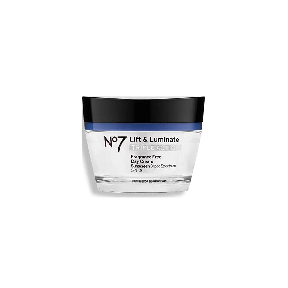 No7 Lift & Luminate Triple Action Fragrance Free Day Cream SPF 30 - Broad Spectrum Anti Aging Face Cream - Hydrating Hibiscus Peptides & Hyaluron