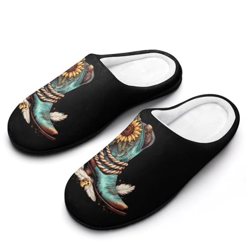 Boots Sunflower Feather Women's Slippers Warm House Slippers Indoor House Shoes with Anti-Skid Rubber Sole