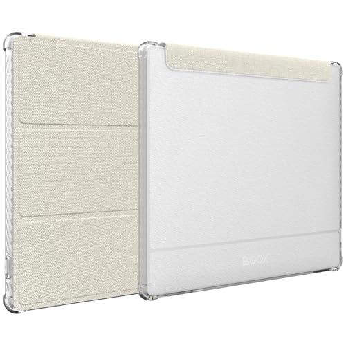 TUDIA SKN FLIP Designed for 7" Onyx Boox Go 7 / Color 7 (Gen I 2024 / Gen II 2025 / Gen 2) Case - [Enhanced Auto Wake/Sleep Technology] Shockproof Transparent TPU Textured Leather Trifold (Beige)