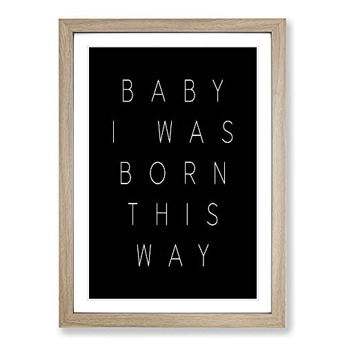 I Was Born This Way Typography Quote Framed Wall Art Print, Ready to Hang Picture for Living Room Bedroom Home Office Décor, Oak A4 (34 x 25 cm)