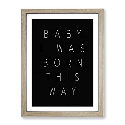 I Was Born This Way Typography Quote Framed Wall Art Print, Ready to Hang Picture for Living Room Bedroom Home Office Décor, Oak A3 (34 x 46 cm)