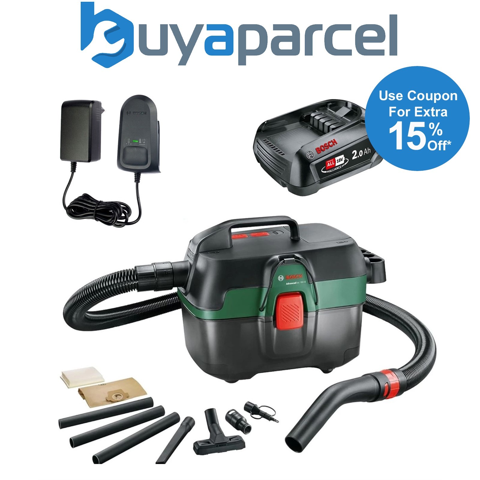 Bosch AdvancedVac 18V Cordless Wet & Dry Vacuum Cleaner Blower 1 x 2.0Ah Batt