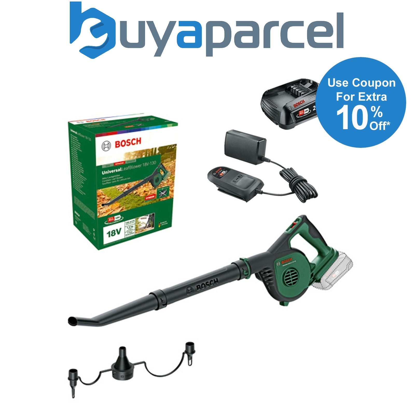 Bosch GBL18V-120 18v Cordless Blower + 4 Nozzles - 4.0ah Battery + Charger