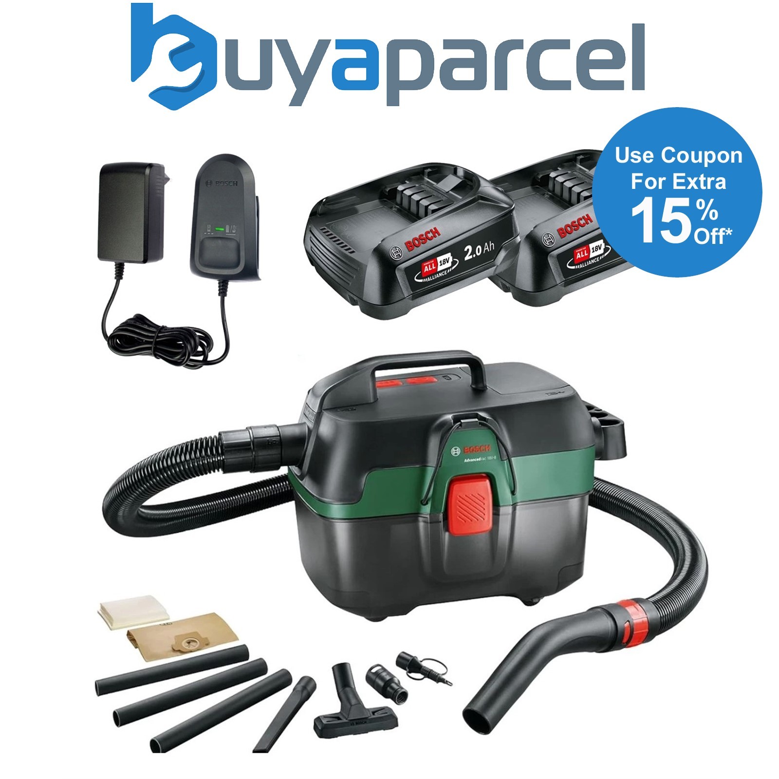 Bosch AdvancedVac 18V Cordless Wet & Dry Vacuum Cleaner Blower 2 x 2.0Ah Batt