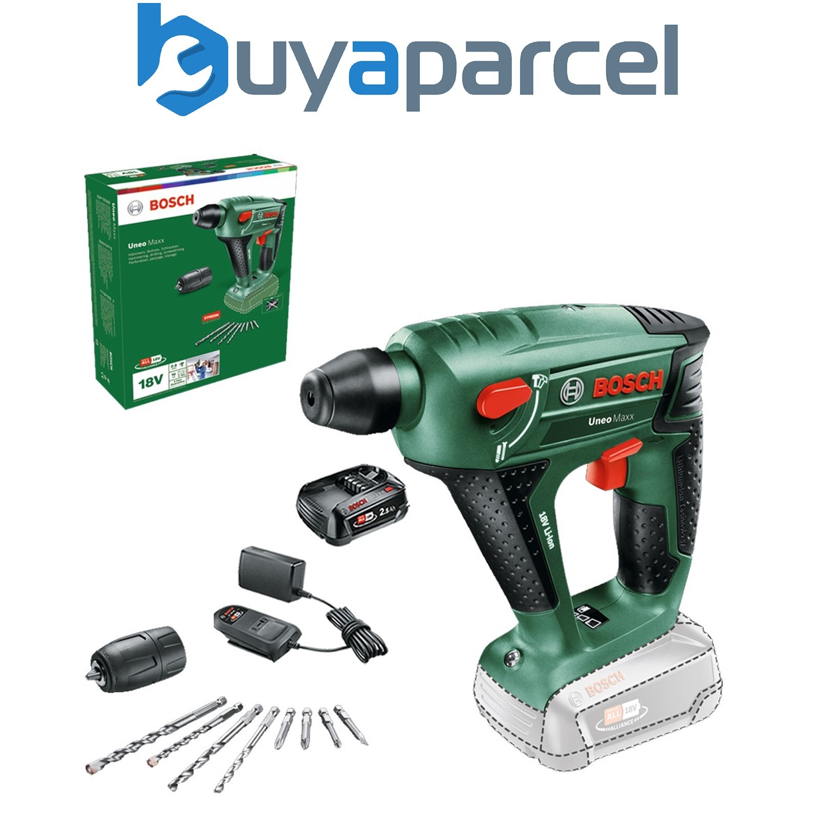 Bosch 060395230C 18v Rotary SDS Hammer Drill UNEO Maxx + Chuck 2.5AH Battery