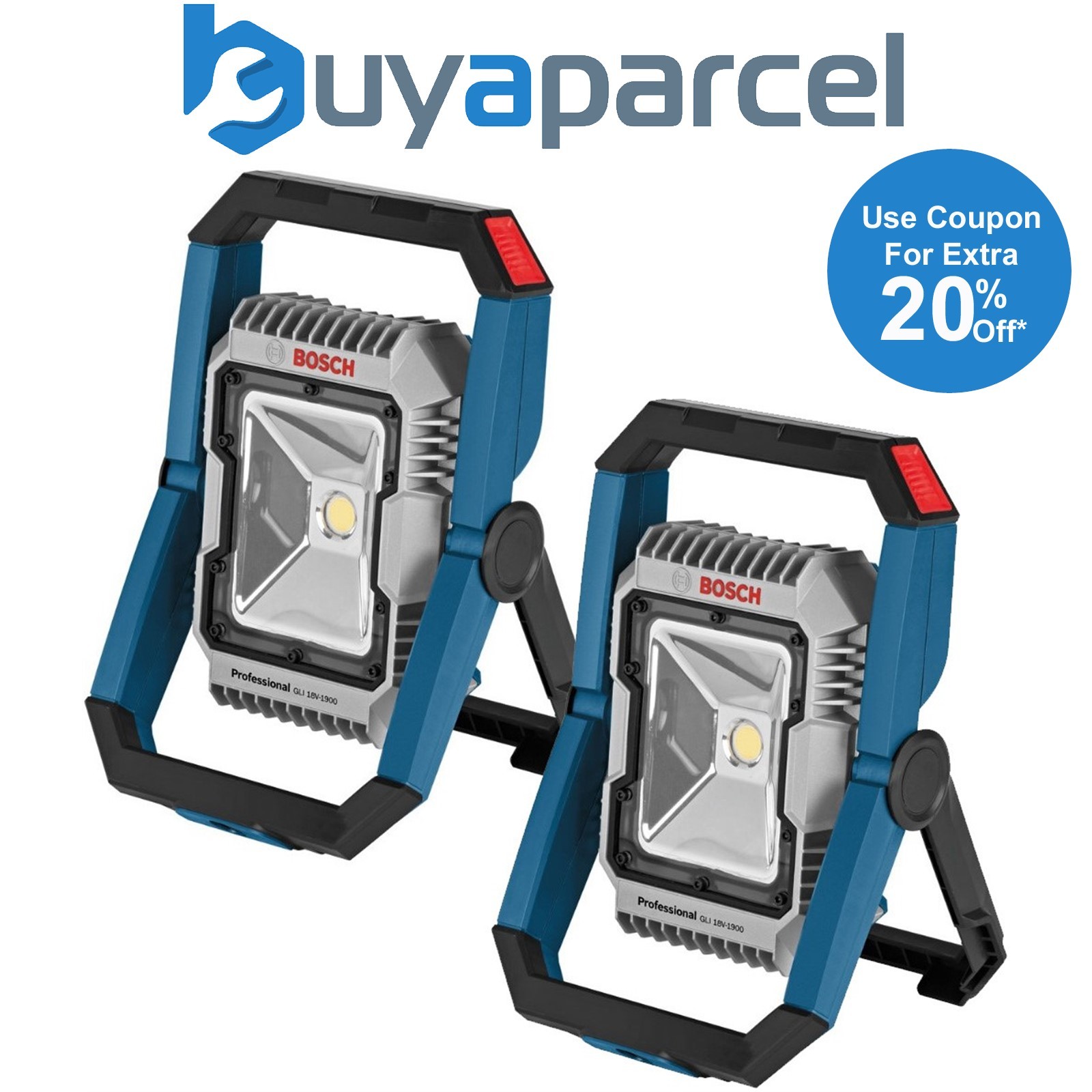 2x Bosch GLI 18V-1900 18v Lithium LED Cordless Floodlight Torch Work Site Light