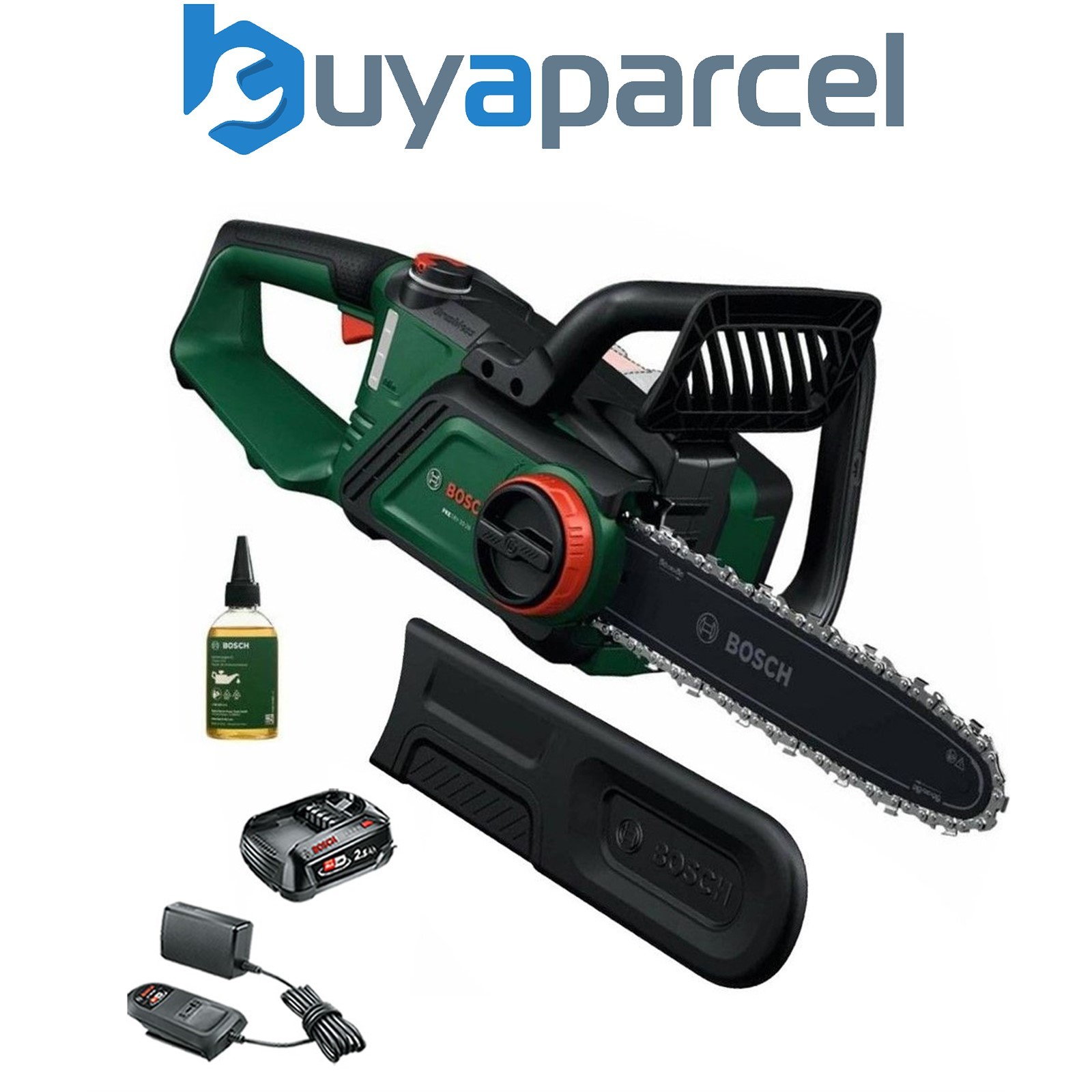 Bosch Green 18v Cordless 30cm Chainsaw 300mm Bar Length + 1 x 2.5ah Battery Kit
