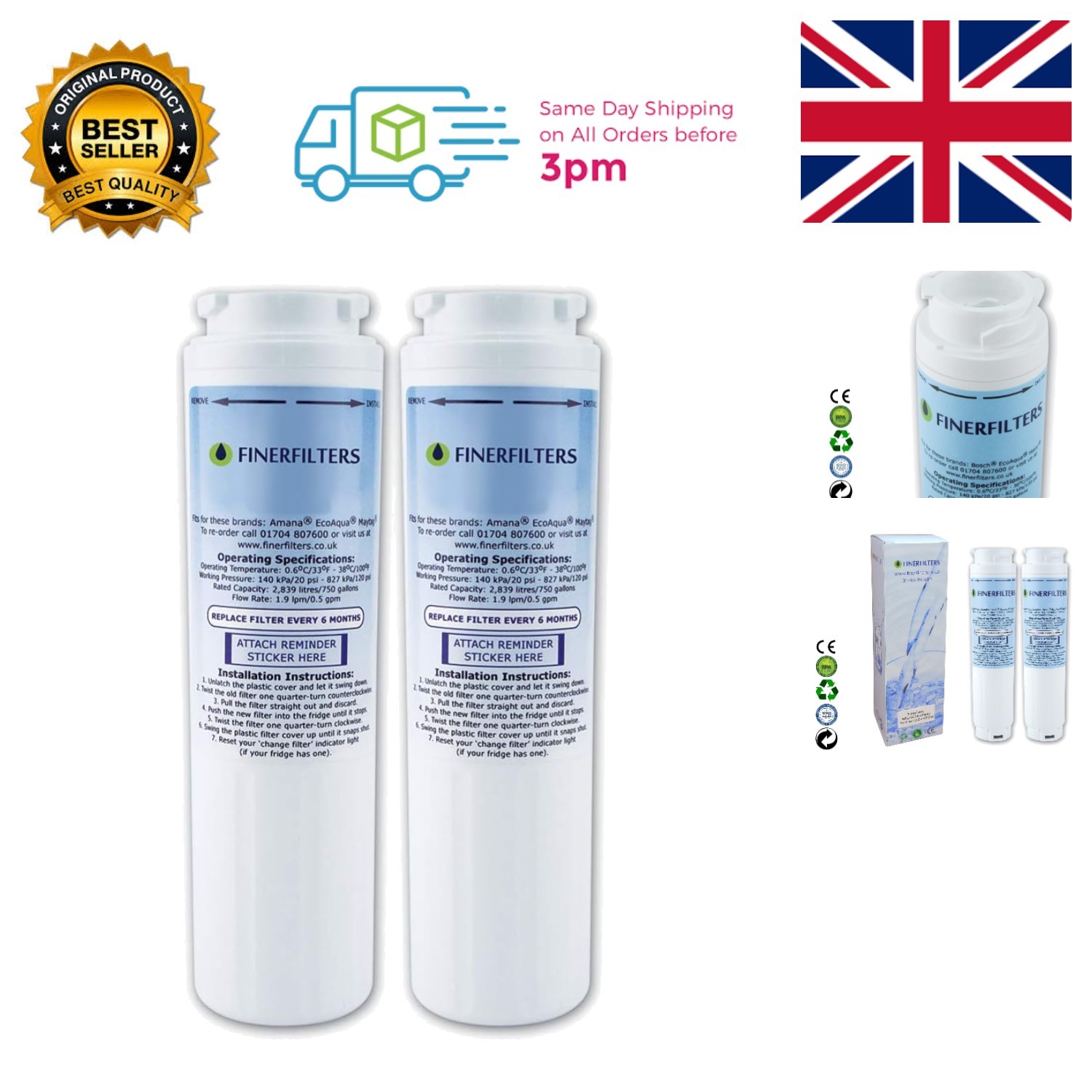2-Pack Fridge Water Filter - UltraClarity Compatible for Bosch & Siemens