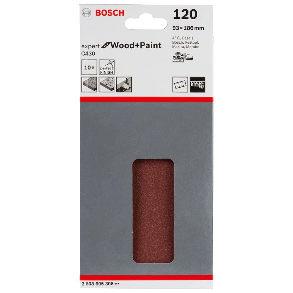 Bosch Professional Sanding Sheet C430 102X62mm, 92mm G120 10PCE 2608607409