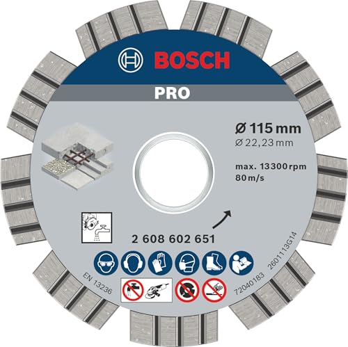 Bosch 1x PRO Concrete Diamond Cutting Disc for Bore 22.23 and Small Angle Grinders (for Concrete, Reinforced concrete, Ø 115 mm, Professional Accessory Small Angle Grinder)