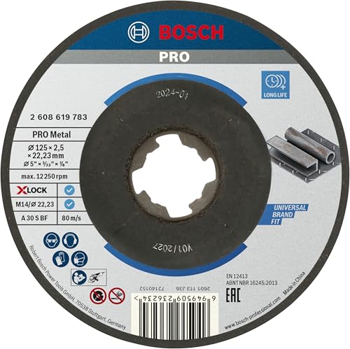 Bosch 1x PRO Metal Longlife Cutting Disc for Small Angle Grinder and X-Lock, M14/22.23 mm (for Steel, Ø 125 mm, Professional Accessory Small Angle Grinder)