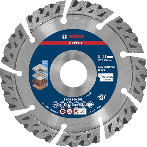 Bosch 1x EXPERT MultiMaterial Diamond Cutting Disc (for Concrete, Reinforced concrete, Ø 115 mm, Professional Accessory Small Angle Grinder)