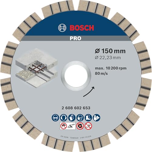 Bosch 1x PRO Multi Material Diamond Cutting Disc for Bore 22.23 and Large Angle Grinders (for Concrete, Reinforced concrete, Ø 150 mm, Professional Accessory Large Angle Grinder)