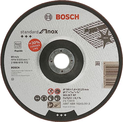 Bosch 1x PRO Stainess Steel and Metal Longlife Thin Cutting Disc for Large Angle Grinder and Bore 22.23 mm (for Steel, Stainless steel, Ø 180 mm, Professional Accessory Large Angle Grinder)
