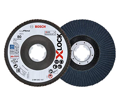 Bosch 1 x Pro Metal X571 Flap Disc Angled Design for X-Lock (for Steel, Stainless Steel, Diameter 125 mm, Grit 80, Professional Accessories, Small Angle Grinder)