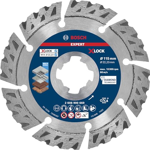 Bosch 1x EXPERT MultiMaterial X-LOCK Diamond Cutting Disc (for Concrete, Reinforced concrete, Ø 115 mm, Professional Accessory Small Angle Grinder)