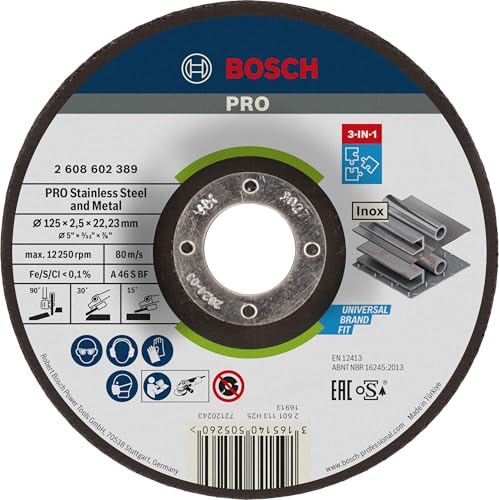 Bosch 1x PRO Stainless Steel and Metal 3-in-1 Disc for Small Angle Grinder and Bore 22.23 mm (for Steel, Stainless steel, Ø 125 mm, Professional Accessory Small Angle Grinder)