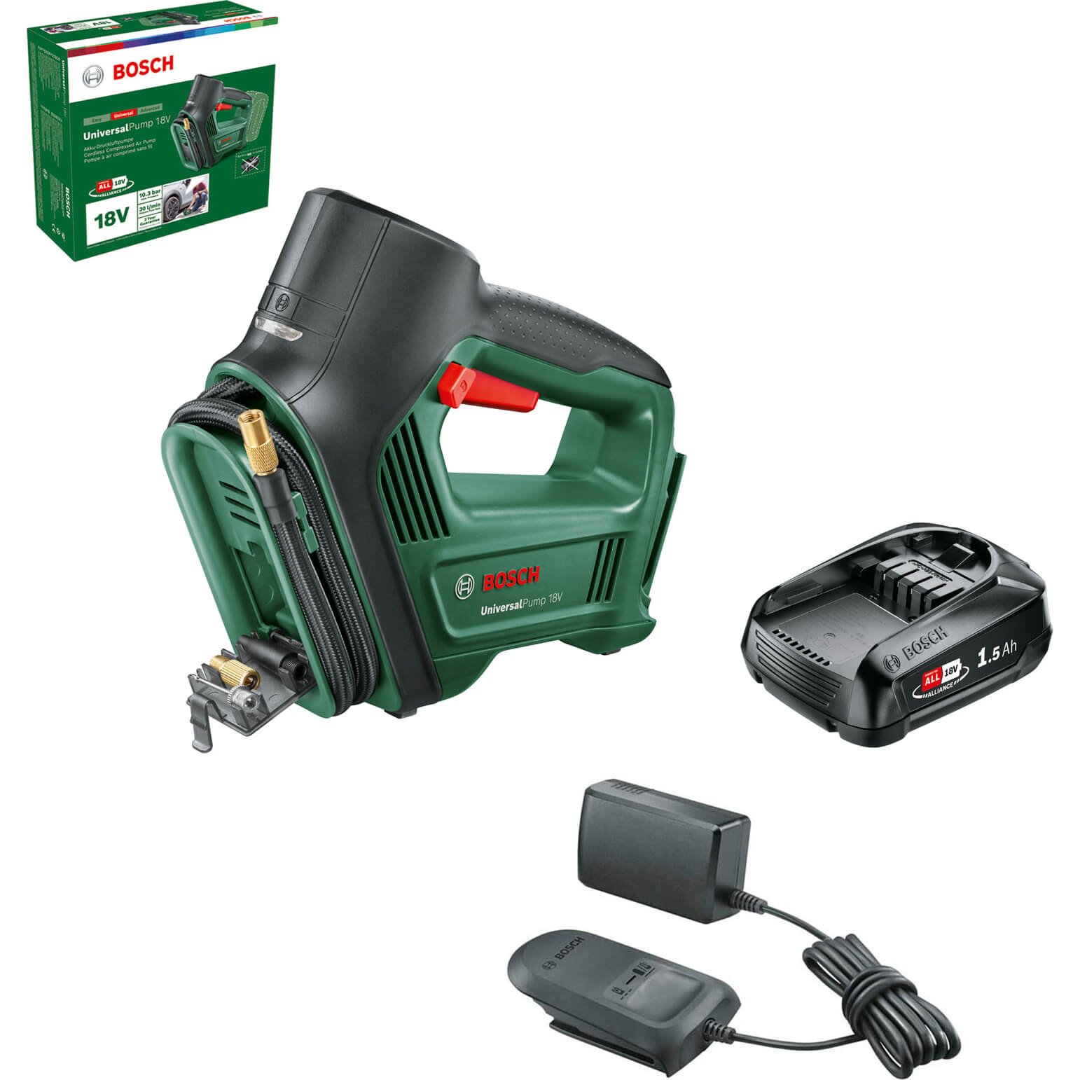 Bosch UNIVERSALPUMP P4A 18v Cordless Air Pump 1 x 1.5ah Li-ion Battery Charger No Case