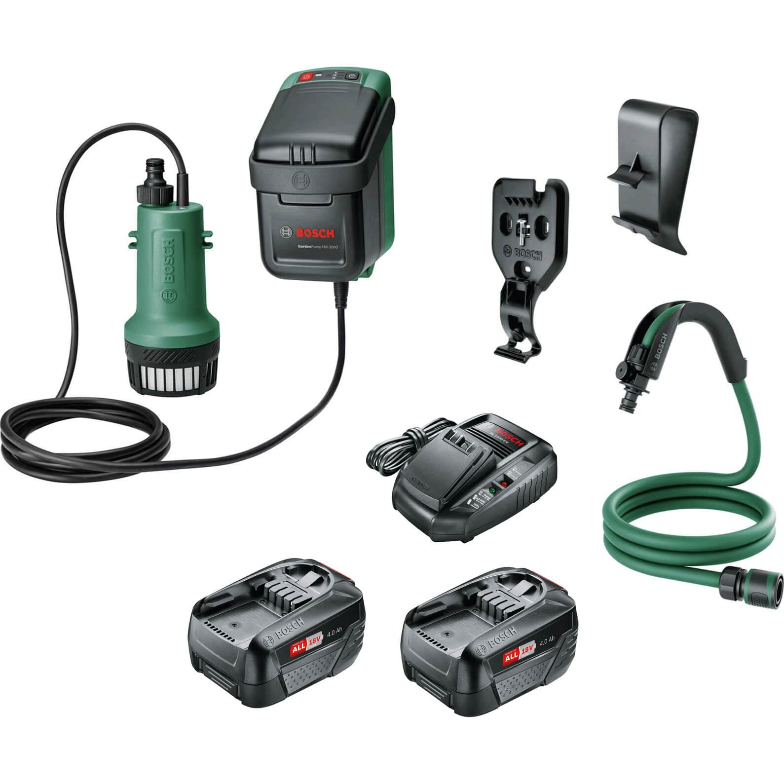 Bosch GARDENPUMP 18-2000 P4A 18v Cordless Submersible Water Pump 2 x 4ah Li-ion Battery Charger