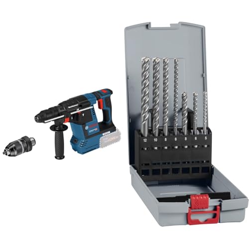 Bosch Professional 18V System Cordless Rotary Hammer GBH 18V-26 F (SDS Plus, Without Battery/Charger) + 5X Expert SDS plus-7X Hammer Drill Bit Set (for Soft Stone, Hard Stone, Ø 5-10 mm)